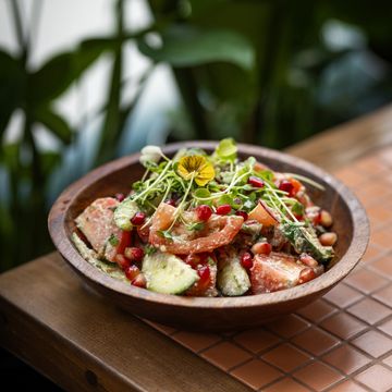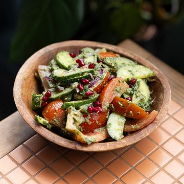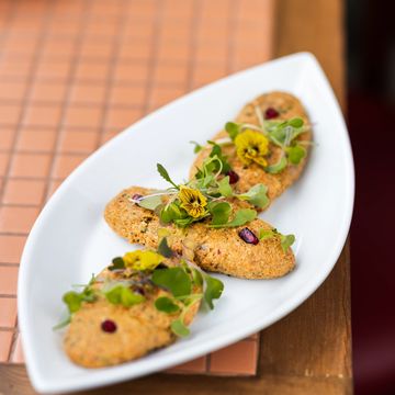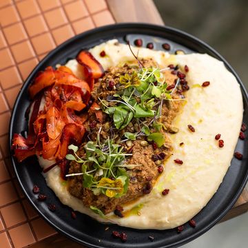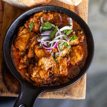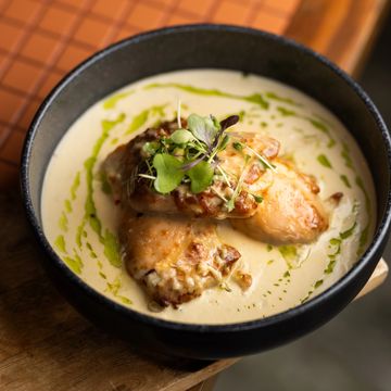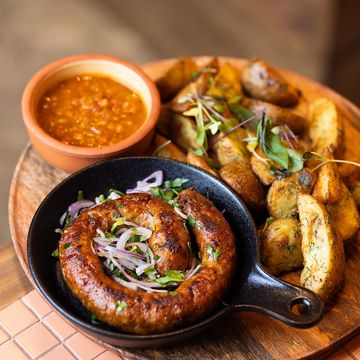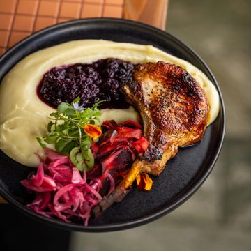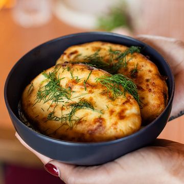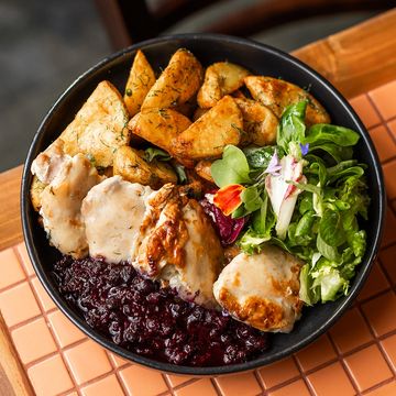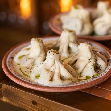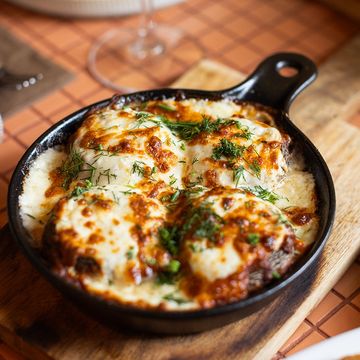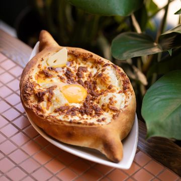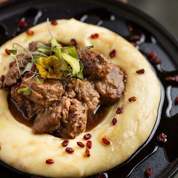 Slowly cooked beef in red wine, Georgian spices and thyme. Served with traditional Tashmijabi - mashed potatoes with cheese