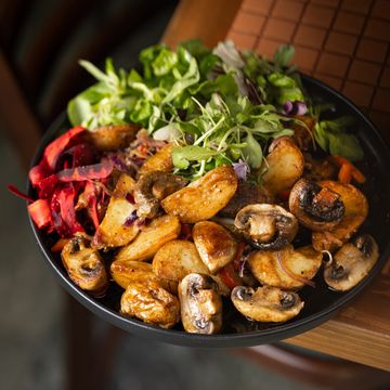 Traditional home style mushroom with roasted potatoes, paprika and onion